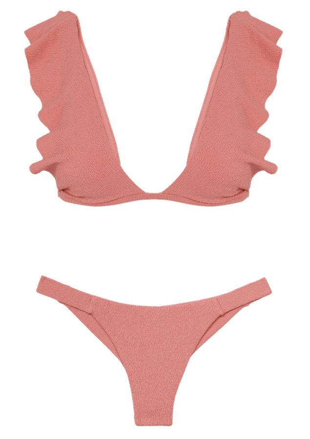 Textura exclusiva Firenze, um creponado opaco que empresta para a moda praia características do algodão e do linho.