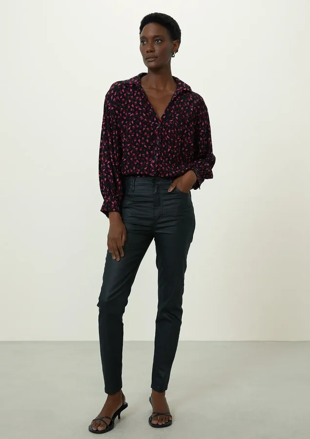 Blusa maravilhosa! Comprimento longo, manga longa, modelagem ampla e tecido de crepe leve, ela deve ser super confortável. O decote em V e o fechamento frontal com botões dão um toque elegante e as fendas laterais e o franzido na pala adicionam um charme extra. Tenho certeza de que a combinação desses detalhes resulta em uma peça linda e versátil. E as fotos com modelos são sempre úteis para visualizar como a peça fica no corpo.