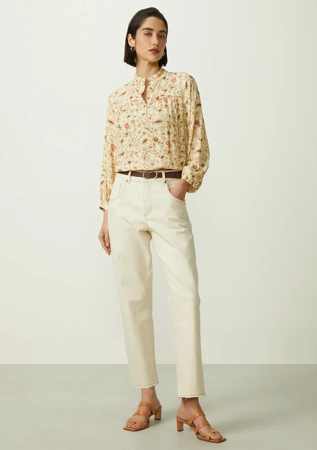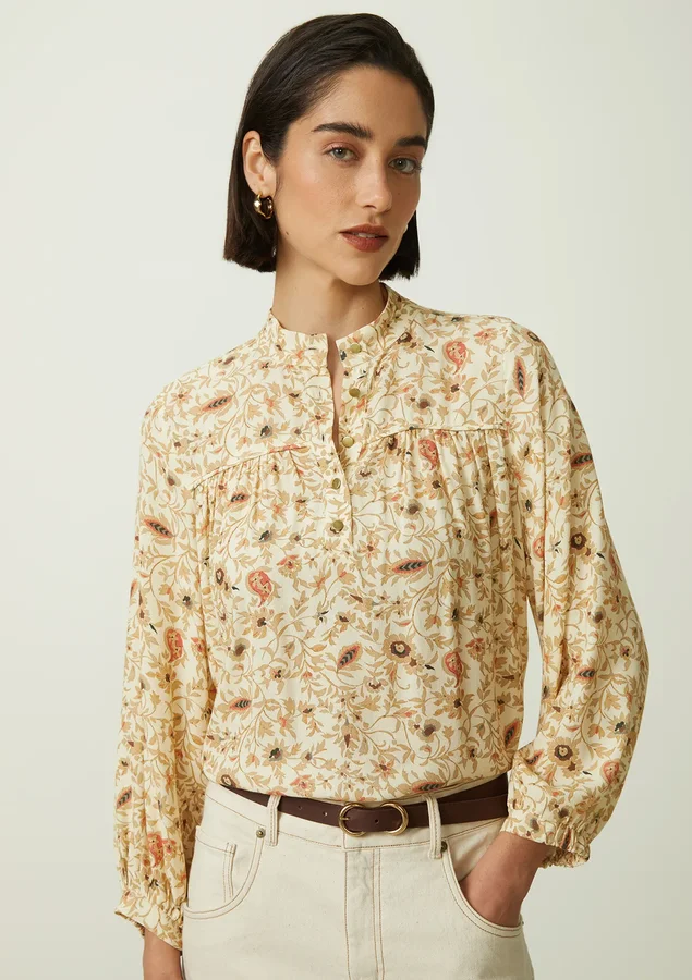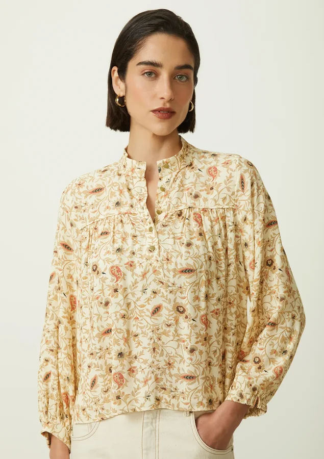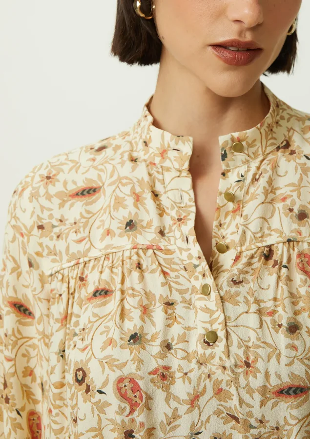 Blusa apresenta um comprimento longo e uma modelagem ampla, proporcionando um caimento solto e confortável que é perfeito para diversas ocasiões. As mangas 7/8 conferem um toque moderno e sofisticado à peça, A gola polo adiciona um toque clássico e atemporal, com fechamento frontal com botões adiciona um detalhe charmoso à peça, permitindo que você ajuste o decote de acordo com sua preferência. Detalhes de franzido frontal e punho com meio elástico adicionam textura e estilo à blusa, garantindo um visual único e sofisticado e As fendas laterais proporcionam liberdade de movimento e um toque de sensualidade sutil.