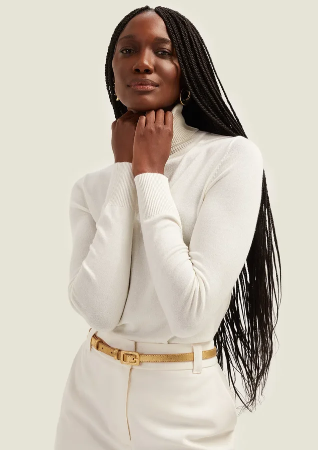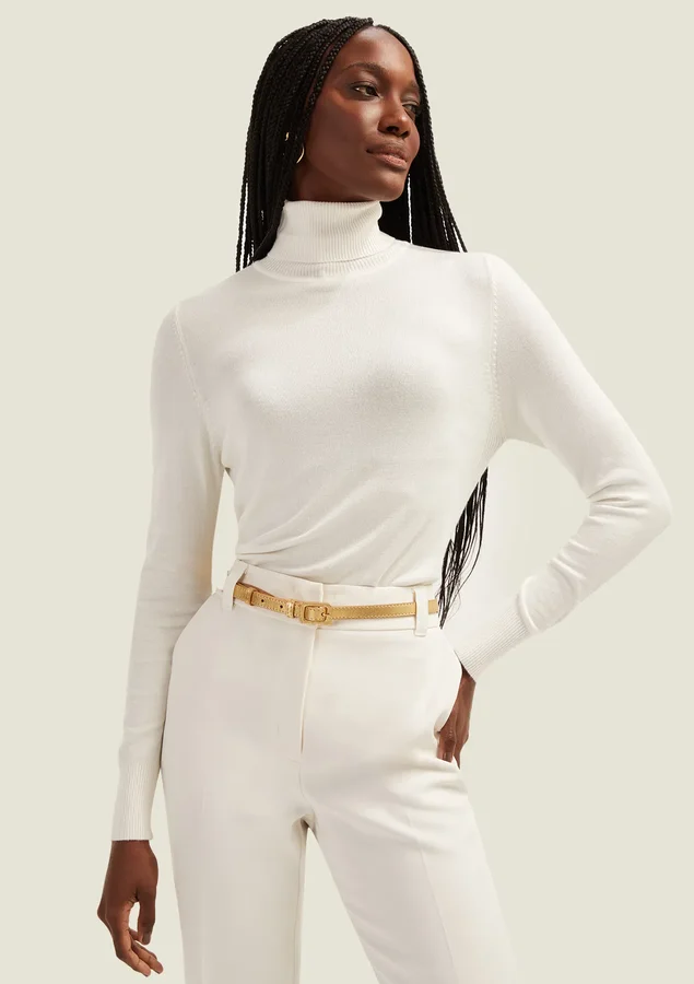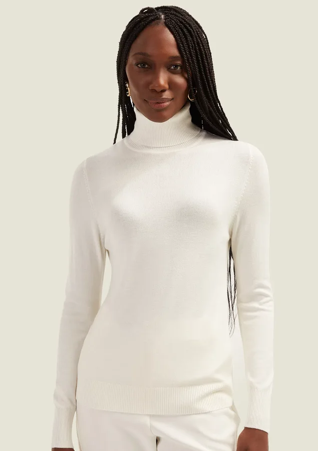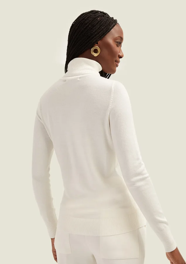 Blusa Comprimento médio, Manga longa, Modelagem fit, Gola alta, Detalhe canelado na lateral da peça