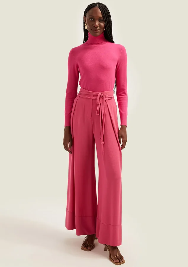 Blusa Comprimento médio, Manga longa, Modelagem fit, Gola alta, Detalhe canelado na lateral da peça