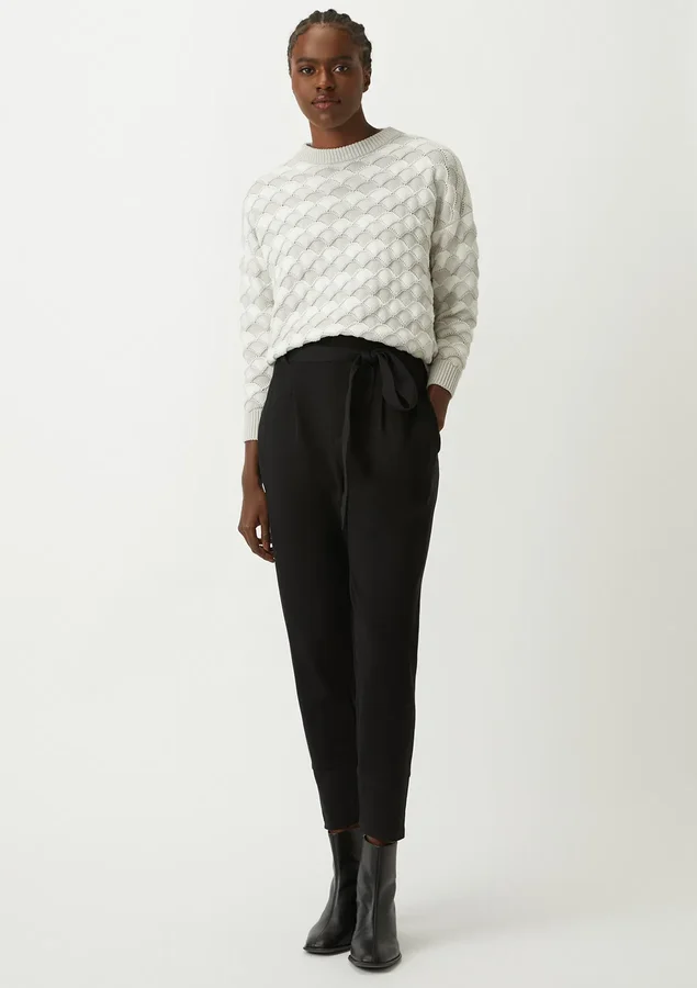 Blusa, Comprimento médio, Manga longa, Amplo, Tecido:tricot, Toque macio, Decote redondo, Textura geométrica, Possui lurex prata.