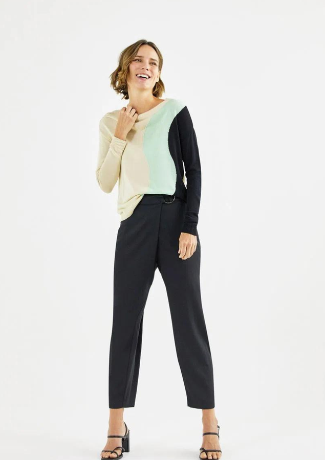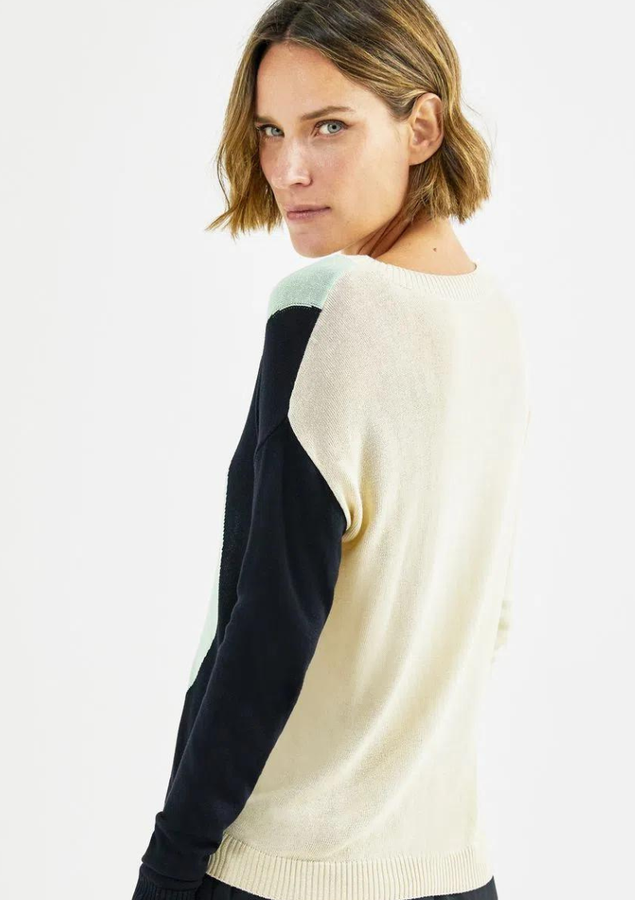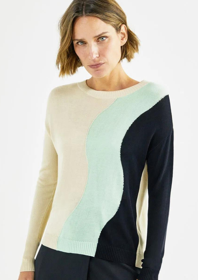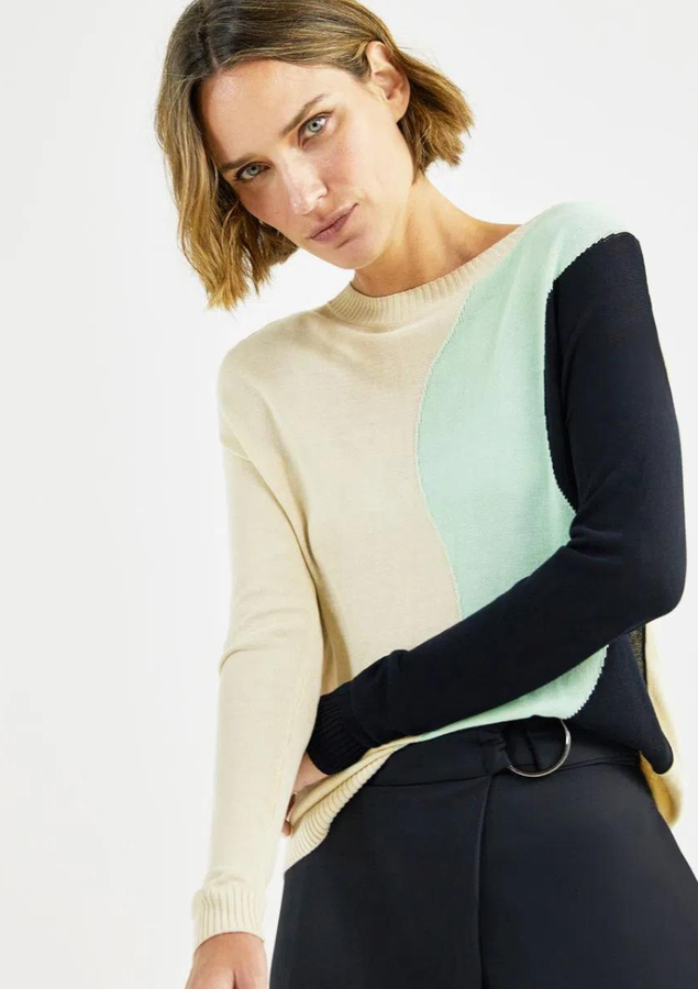 - 1 BLUSA TRICOT JACQUARD FEMININA SHOULDER BICOLOR