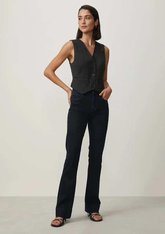 Esta calça jeans boot cut é a escolha perfeita para quem busca um visual moderno e confortável. Com seu tecido elástico e design sofisticado, é ideal para compor looks versáteis que vão do casual ao elegante, sempre com um toque de responsabilidade ambiental.