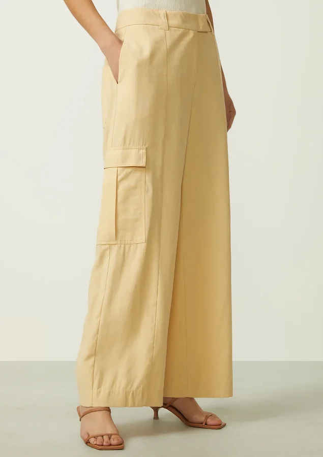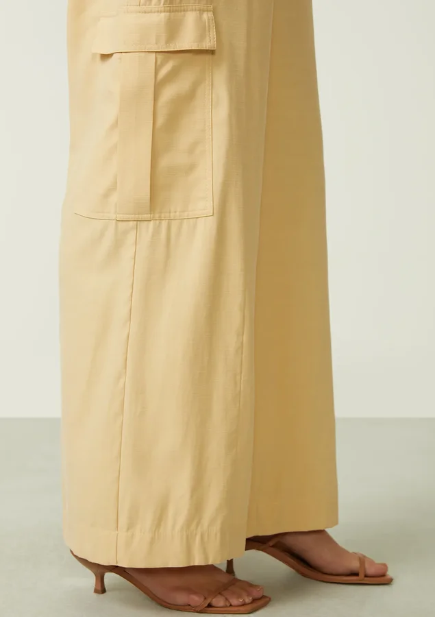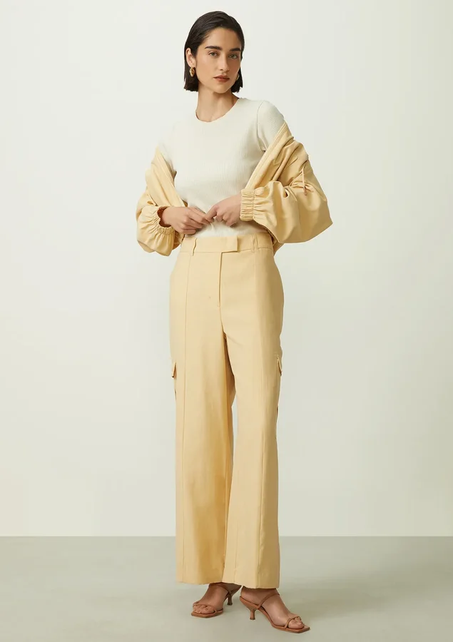 Renove seu guarda-roupa com nossa elegante calça reta de cintura alta, confeccionada em um tecido encorpado com um toque suave de pêssego, feito de viscose proveniente de reflorestamento. Esta peça combina estilo atemporal com um compromisso com a sustentabilidade, oferecendo um visual moderno e consciente.