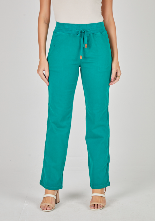 Uma calça que vai fazer diferença no seu guarda-roupa, com uma modelagem reta, bolsos laterais, elástico ajustável na cintura.