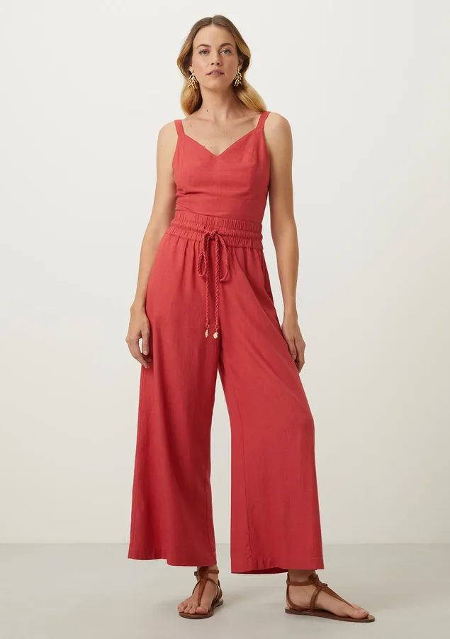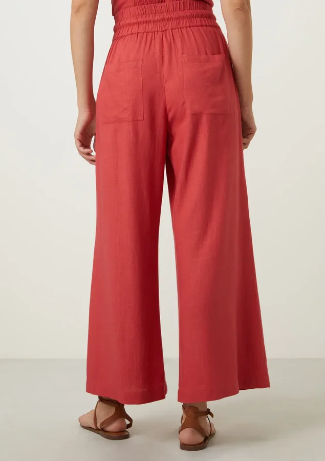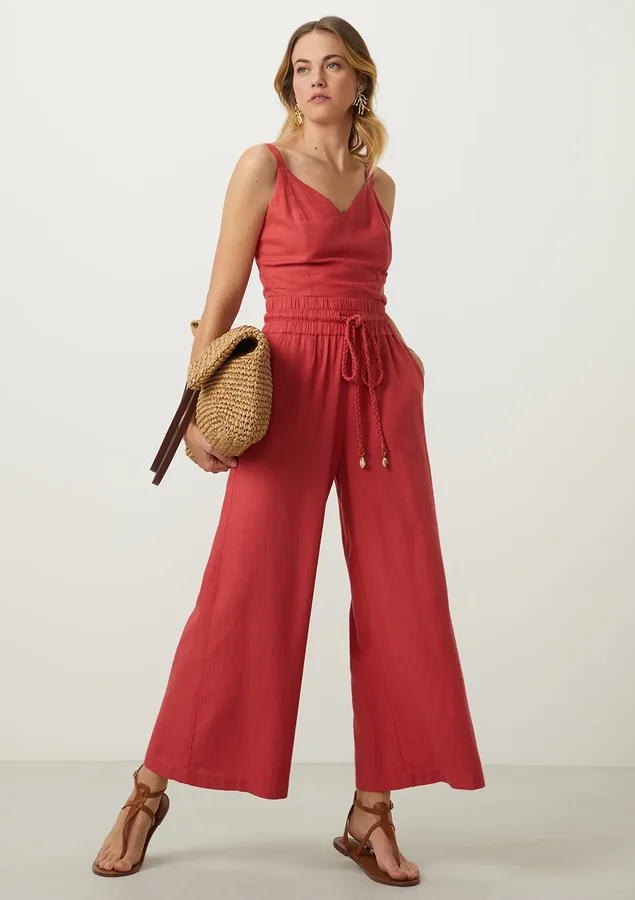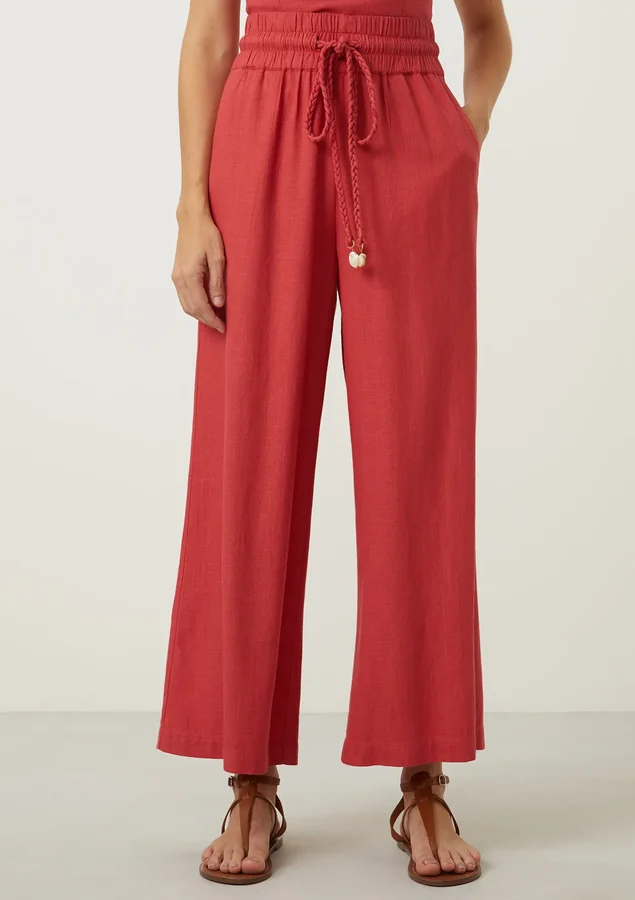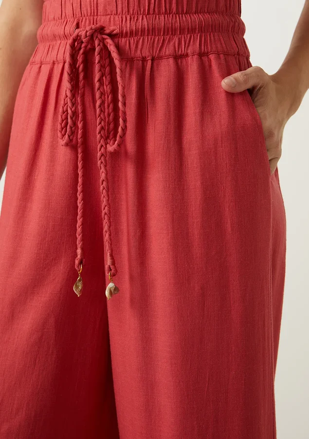 Esta calça comprimento pantacourt foi projetada para proporcionar liberdade de movimento e um caimento elegante, garantindo conforto durante todo o dia. O elástico na cintura permite que a calça se adapte perfeitamente ao seu corpo, proporcionando um ajuste seguro e confortável. O cordão trançado com pingente na ponta não apenas adiciona um toque de estilo à peça, mas também permite que você ajuste o nível de aperto da cintura de acordo com sua preferência.