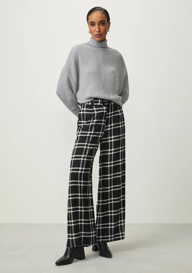Esta calça de comprimento longo é a escolha ideal para quem busca um visual sofisticado e confortável. Com cintura alta, ela proporciona um ajuste elegante que realça a silhueta. A modelagem reta confere um visual clássico e versátil, adequado tanto para ambientes profissionais quanto para ocasiões casuais.