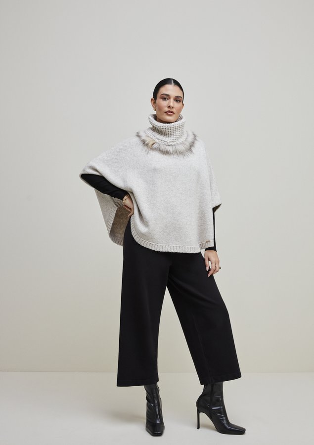 Capa Feminina, modelagem ampla com gola removivel possui pele fake. Confeccionada em tricot, que proporciona um caimento macio e confortável no corpo. Uma peça perfeita para compor looks estilosos e modernos.