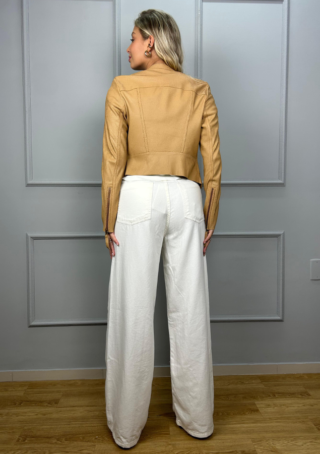A jaqueta de couro 100% parece ser um item realmente versátil e sofisticado, perfeito para diversas ocasiões. Os detalhes como os bolsos decorativos, zíperes nas mangas e aviamentos metálicos personalizados conferem um toque de elegância e estilo único. Além disso, a textura de escama de serpente exclusiva da marca adiciona um elemento diferenciado ao visual.