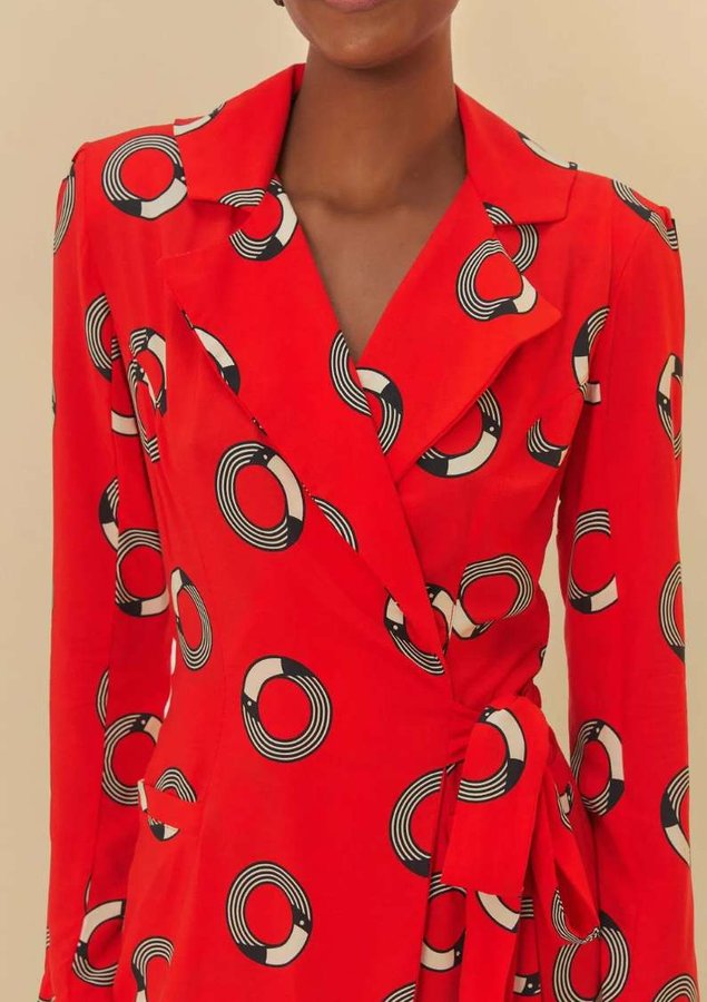 Macaquinho estampado tuca poá. modelagem transpassada com fechamento em botões sutis que realçam a originalidade da peça. o decote em v valoriza a região, enquanto as mangas longas conferem um charme único. perfeito para um look casual ou um encontro especial.