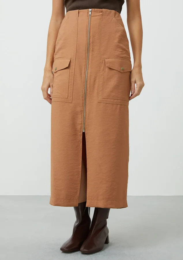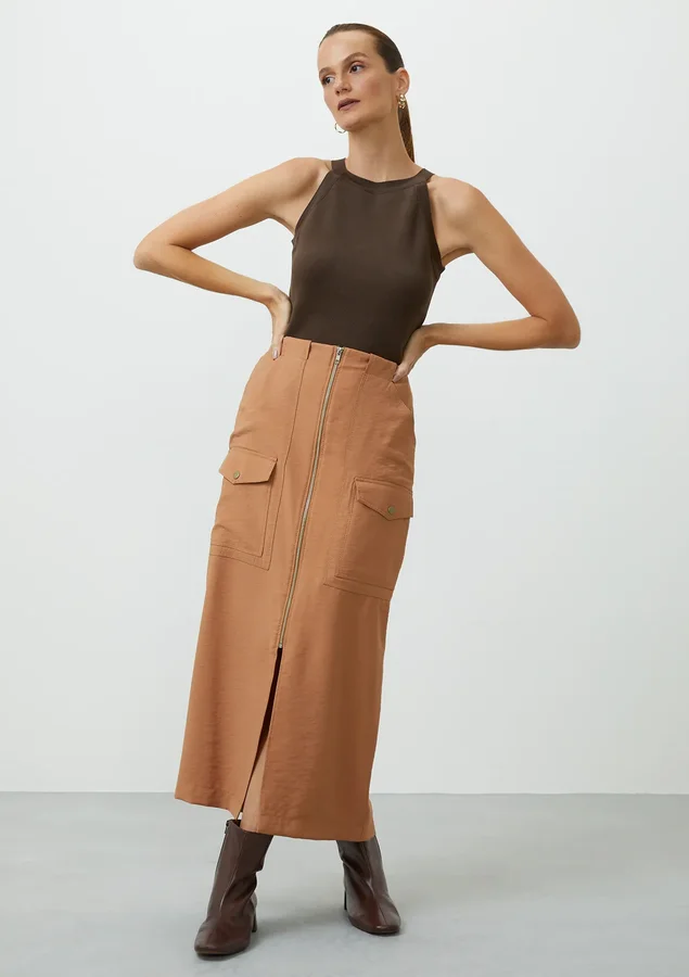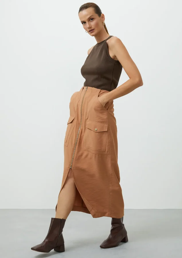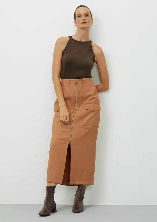 Essa saia midi é perfeita para criar looks variados, do casual ao mais elegante. Seu design contemporâneo combina com diferentes peças do seu guarda-roupa, permitindo diversas combinações. Com Cintura Alta, desenhada para valorizar a silhueta e proporcionar conforto.