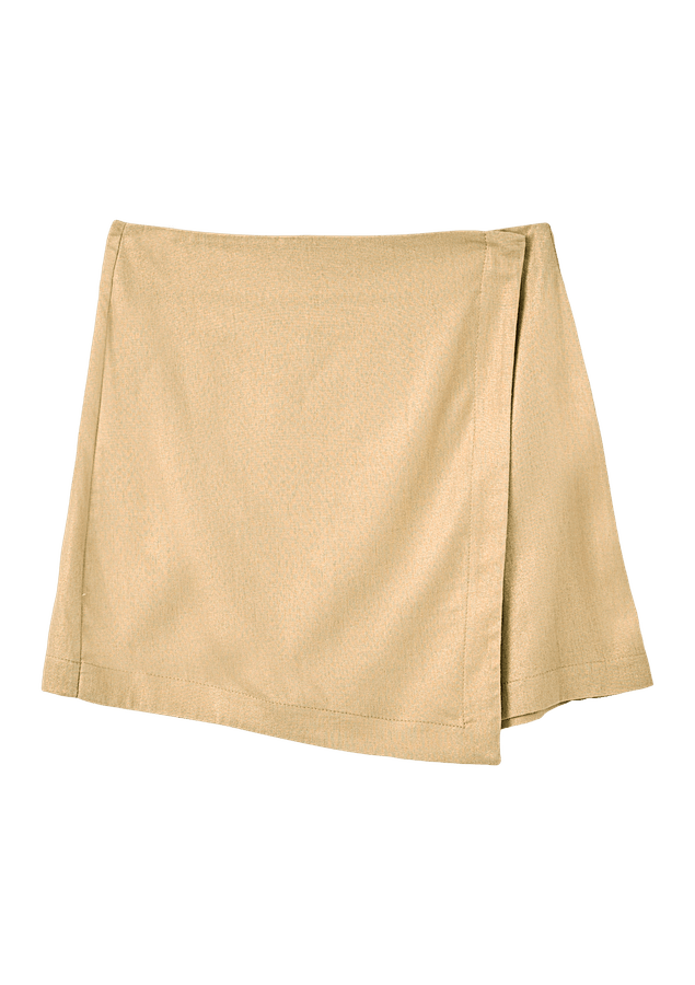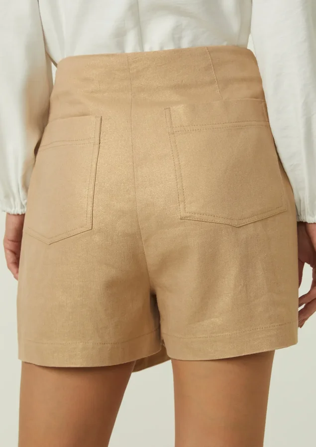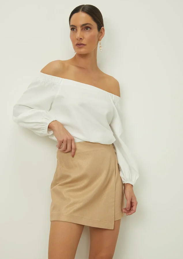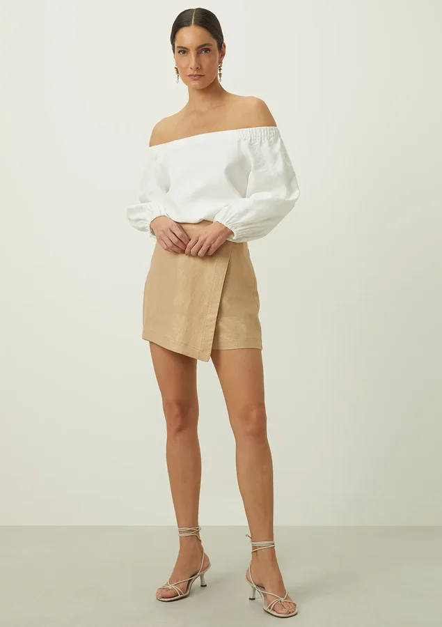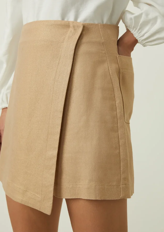 Short-saia comprimento curto, cintura alta, modelagem short-saia, tecido: tecido natural encorpado viscose com linho e foil