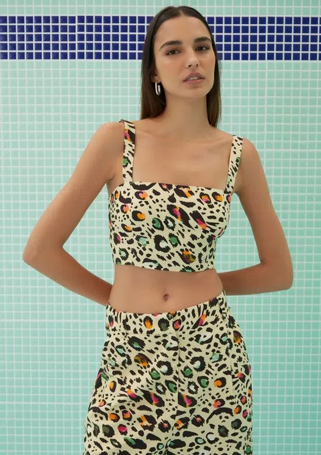 TOP LINHO ONÇA BEGE ANIMALE JEANS ESTAMPADO