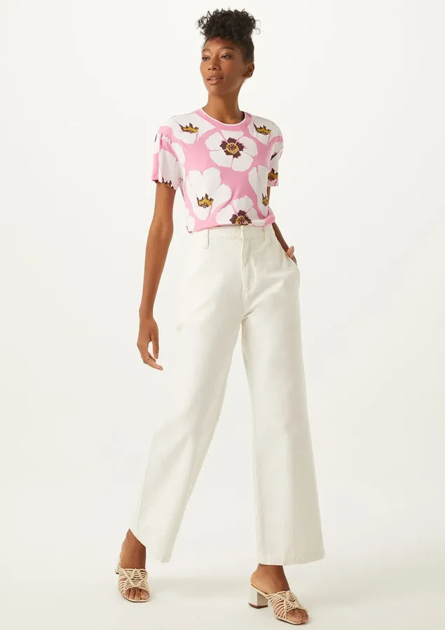T-shirt Comprimento médio, Manga curta, Decote redondo e Modelagem reta.