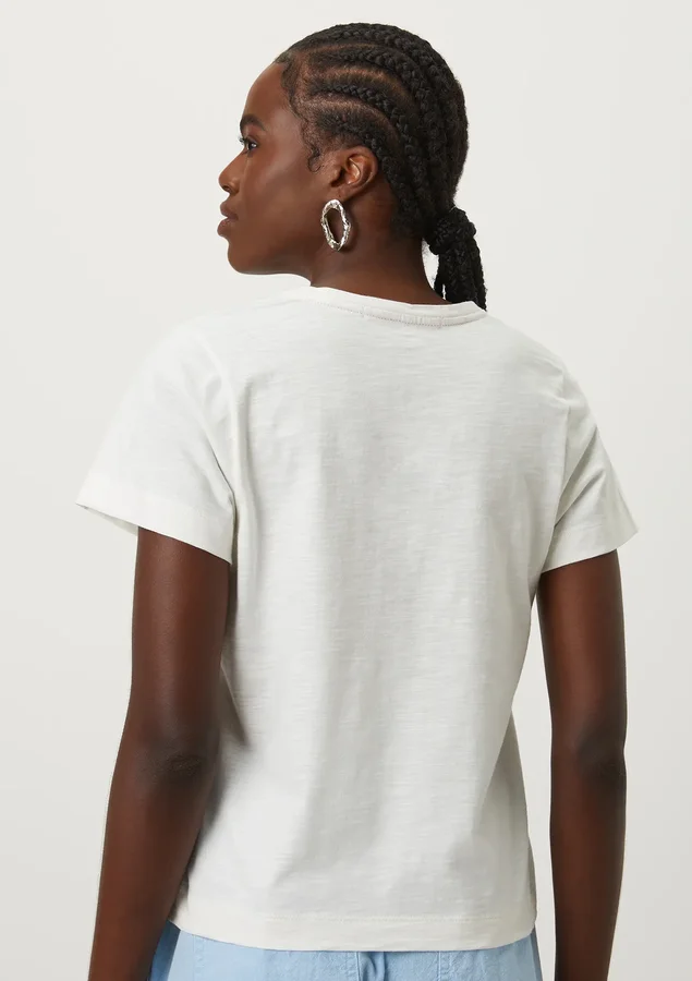 camiseta versátil e cheia de estilo, perfeita para compor looks descontraídos com um toque de sofisticação. Seu comprimento médio e modelagem reta proporcionam um caimento confortável, enquanto as mangas curtas garantem frescor em dias mais quentes.