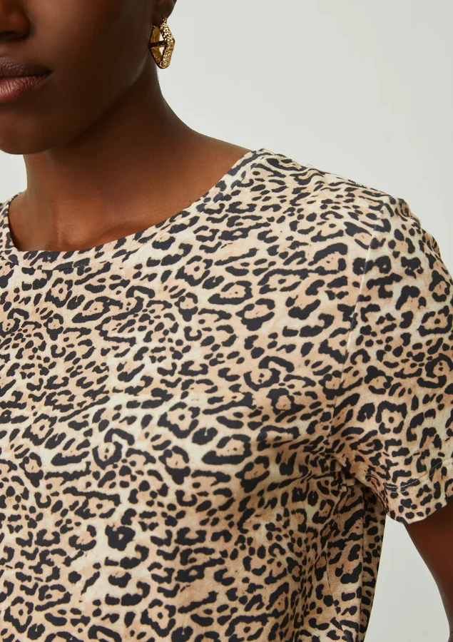 O comprimento médio e a modelagem fit proporcionam um caimento elegante que se adapta facilmente ao corpo, realçando suas curvas de forma sutil e confortável. As mangas curtas garantem liberdade de movimento e frescor, perfeitas para dias quentes ou para as estações mais frias.