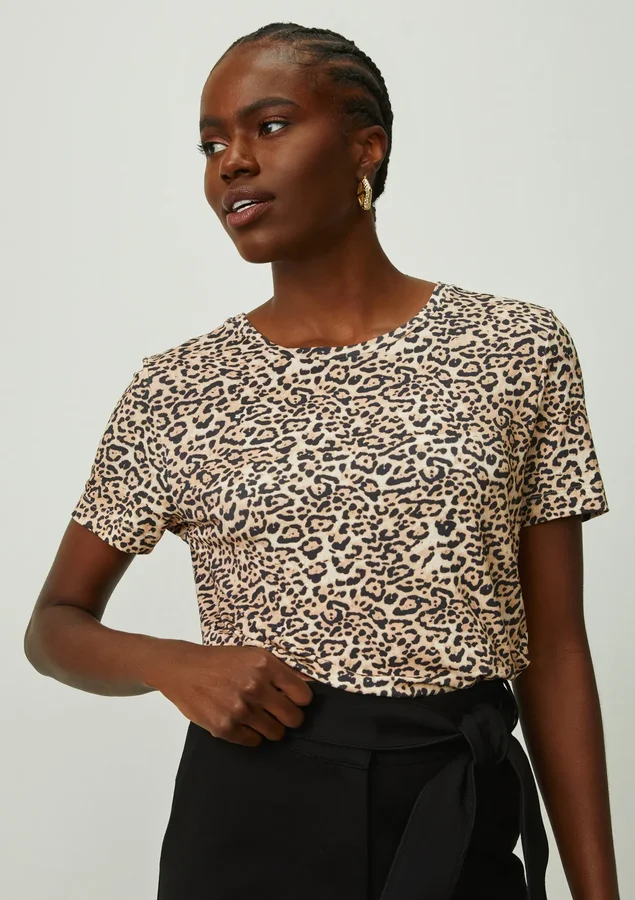 Fabricada com malha geladinha, esta camiseta oferece uma sensação suave e refrescante ao toque, garantindo conforto durante todo o dia. O decote redondo adiciona um toque clássico e versátil.