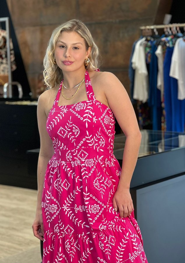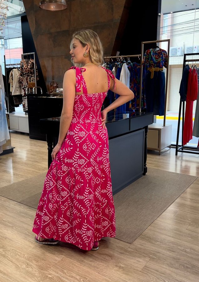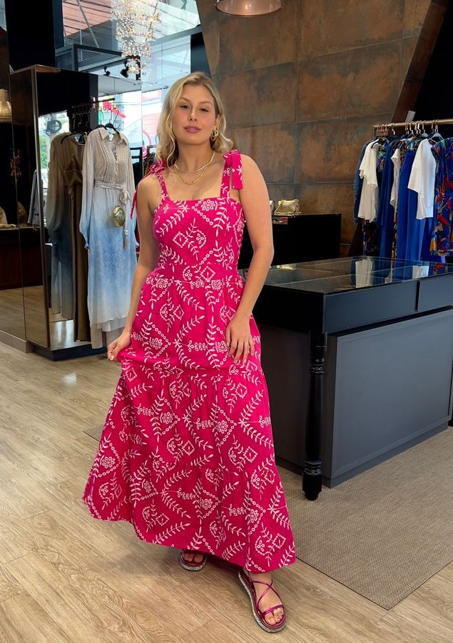 Descubra a elegância que vai te acompanhar em todas as ocasiões com nosso vestido longo de alça com amarração e saias com babados. Este é o vestido perfeito para as mulheres que desejam se destacar com estilo e sofisticação.