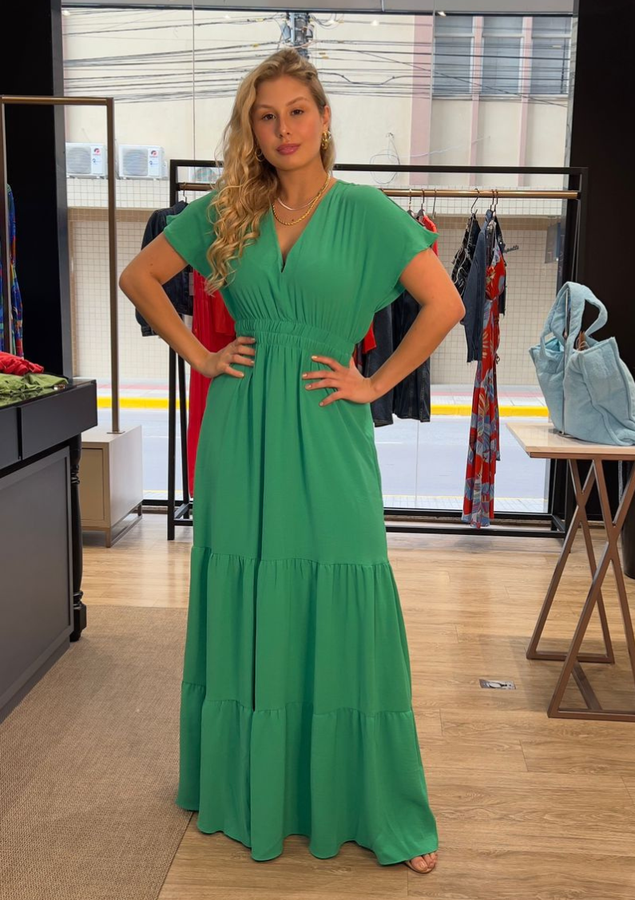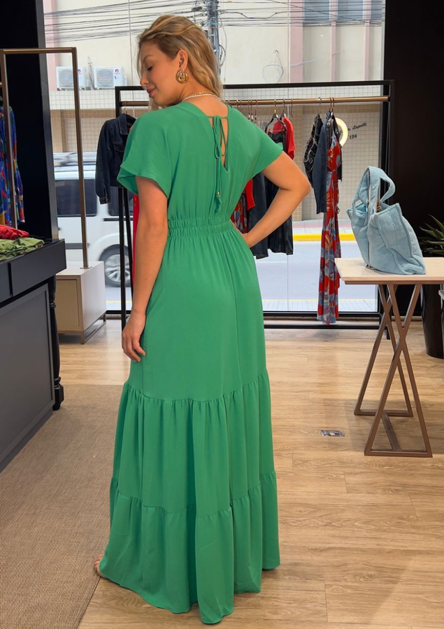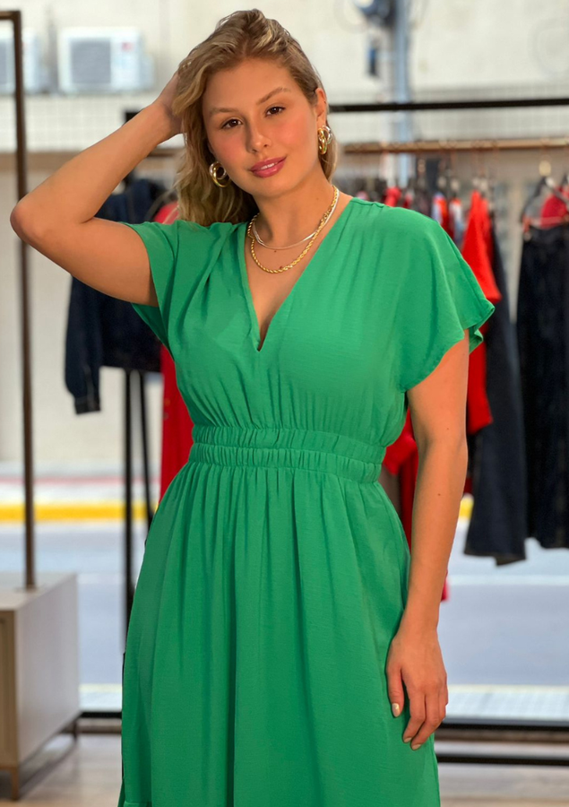 Sua peça chave para os dias ensolarados e as noites quentes do verão com estilo e conforto. Feito com um tecido leve e arejado, esta peça apresenta uma modelagem soltinha que irá mantê-la fresca e confortável. O lastex na cintura proporciona um ajuste perfeito, realçando sua cintura de forma delicada. O decote em V na frente e atrás adiciona um toque de sofisticação ao vestido, revelando sutilmente sua feminilidade. As mangas curtas soltinhas são ideais para manter você fresca e confortável nos dias mais quentes, e acrescentam um toque de estilo.
