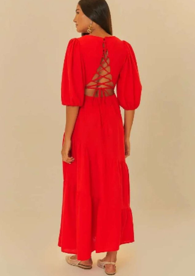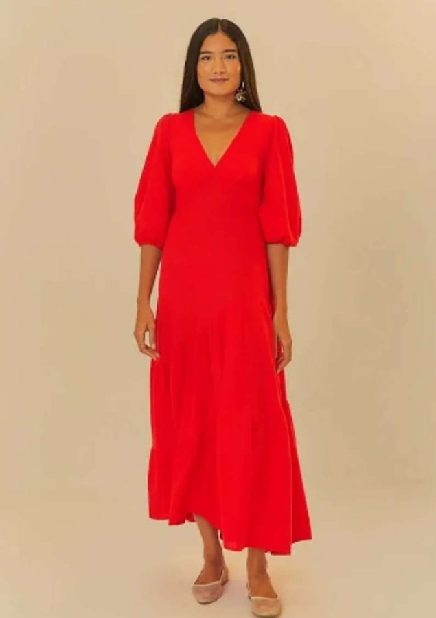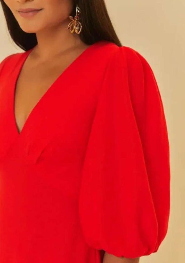 vestido mangas marias. possui decote em v profundo e mangas bufantes, trazendo charme e leveza à peça. confeccionado em tecido fluido, o modelo tem corte evasê, com caimento assimétrico, destacando o movimento e o conforto. a peça conta com decote nas costas com transpasse. esta é uma peça exclusiva da coleção FARM RIO origina