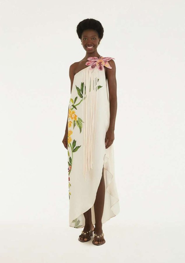 Com modelagem fluida e caimento soltinho, o Vestido Mesa de Fruta Farm traz uma estampa vibrante e exclusiva que remete às mesas tropicais repletas de frutas frescas – como banana, abacaxi, melancia e outras delícias que são a cara do verão. É a união perfeita entre moda e brasilidade, ideal para mulheres que amam se vestir com cor e personalidade.