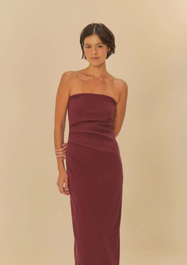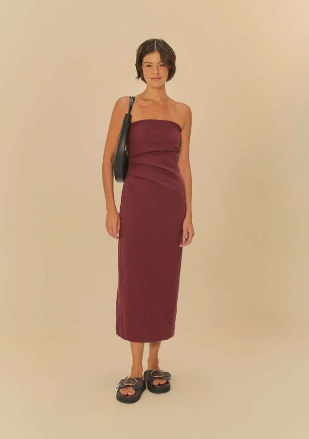 VESTIDO SEM ALCA PREGAS MARROM FARM