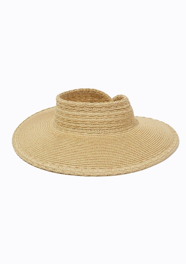 A Viseira é confeccionada em palha, possui formato circular e fechamento em velcro regulável.